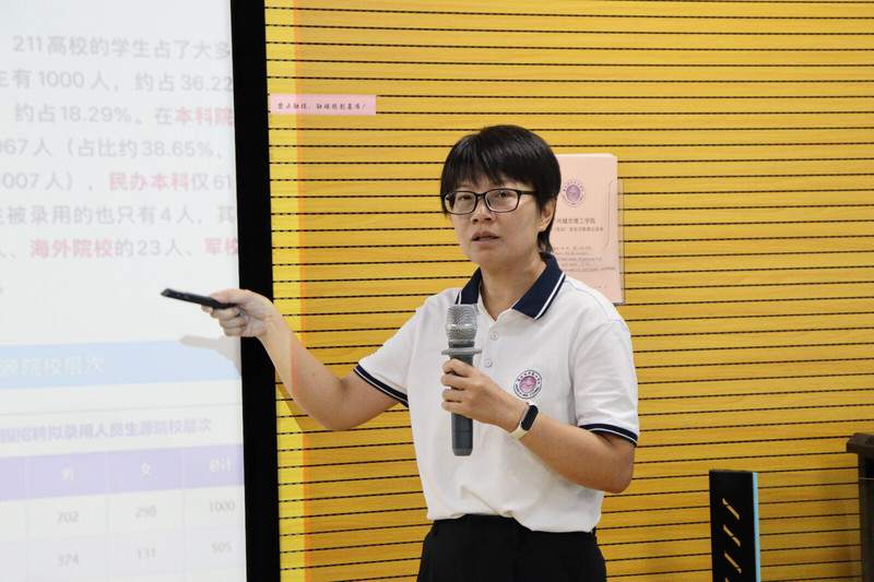 符红勋表示,学院始终将毕业生就业作为重点工作,致力于构建全面的就业支持体系,助力学生实现高质量就业。她提到,学院将持续推进“学长计划”,邀请在各行各业取得突出成绩的校友返校交流,分享职场经验与成长路径;组织开展“我与HR面对面”活动,从用人单位视角解析人才需求,帮助学生提前了解就业趋势;积极拓展企业参观与招聘渠道,定期举办各类专场招聘会,并为考研、考公学生提供辅导。此外,学院已组建专业的就业服务团队,围绕职业定位、简历优化、面试技巧、心理调适等多个方面,为学生提供指导。符红勋鼓励同学们主动与老师沟通,积极利用学院资源,把握每一个就业机会。